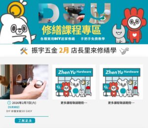 你的生活圈附近有沒有振宇五金門市呢? 振宇五金門市除了購物更能為您提供修繕服務的平台,無論您是擁有修繕技術的專業師傅,還是需要專家的民眾/社區/公司,都可到鄰近的振宇五金登錄您的修繕需求或您的專業技術與服務,讓我們為鄰里提供一個修繕服務的平台。
