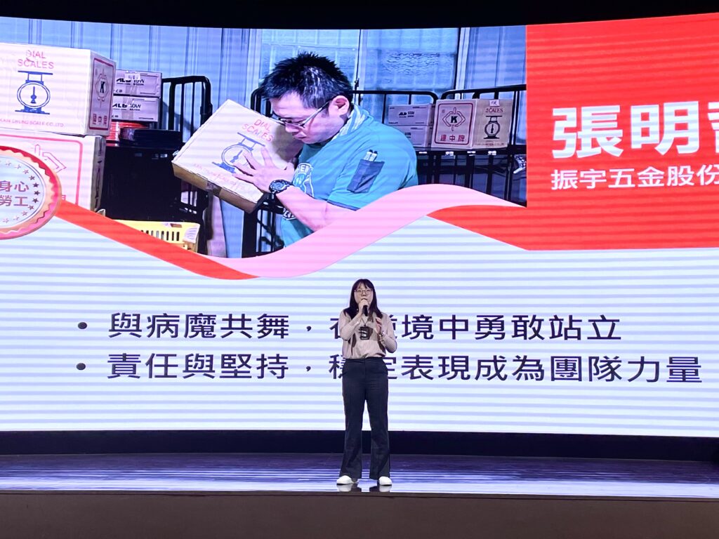 今年振宇五金亦受勞工局邀請分享友善職場推動經驗,由人資部副組長 簡如君 上台代表分享模範勞工夥伴的動人故事,並分享企業如何在職務調整及心理支持面向實施的實務作法,獲得在場單位的認同與肯定。
