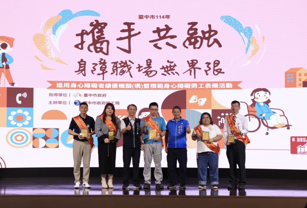 振宇五金(2947)於 11 月 27 日出席台中市政府勞工局舉辦的「114 年度進用身心障礙者績優機關與模範身心障礙勞工表揚典禮」,今年再次榮獲「優良事蹟獎」。此獎項肯定企業在推動多元共融、提供身心障礙者穩定就業支持上的長期努力,此次由勞工局長 林淑媛 到場頒獎,並由倉儲部副理 劉明憲 代表公司上台受獎,肯定企業在推動友善職場上的長期投入。