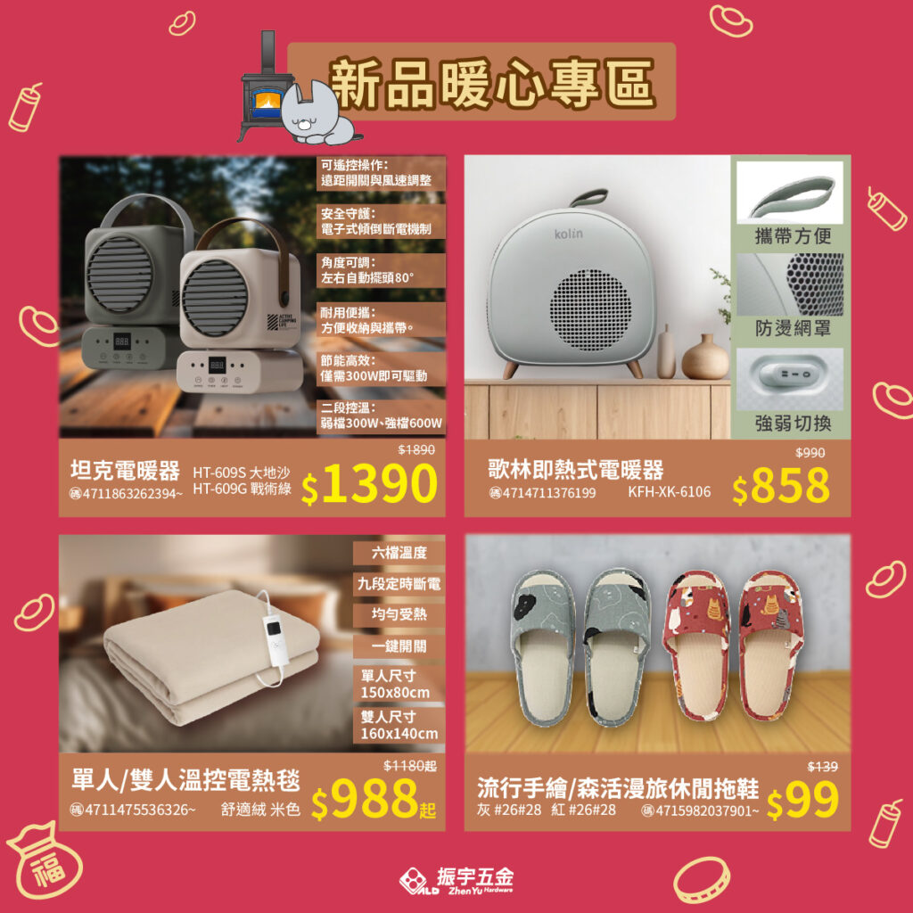 台中總部早晚氣溫下探12度!各式暖暖新品大推薦,坦克電暖器、歌林手提即熱式電暖器、溫控電熱毯、療癒休閒拖鞋,絕對是居家旅行、暖窩辦公必備良品🔥